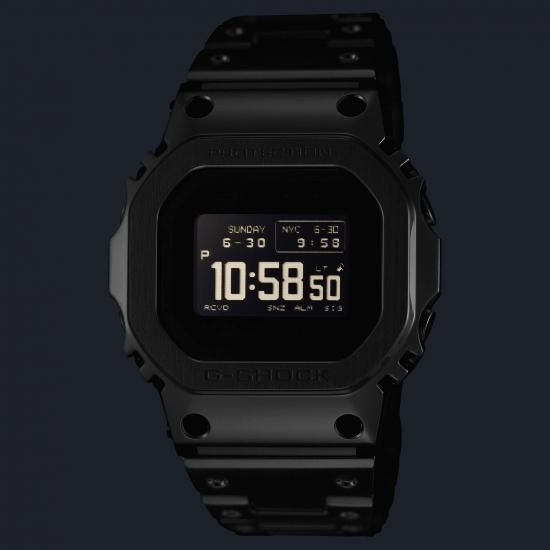 ベゼルとセンターケースを上下で連結した構造を開発。ケースサイドから見える造形が構造の美しさを強調。フルメタルながらG-SHOCKの耐衝撃基準をクリアし、気密性に優れたスクリューバックケースも採用しています。