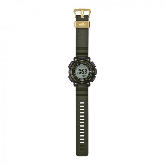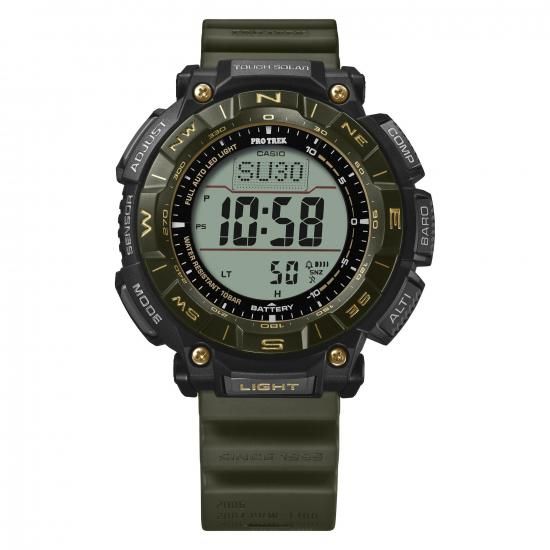 薄型液晶によりスリムなケースデザインを実現し、ケースやバンドには環境負荷低減に貢献するバイオマスプラスチックを採用。自然を愛するアウトドア愛好家の活動をサポートしながら、地球環境にも配慮した時計です。