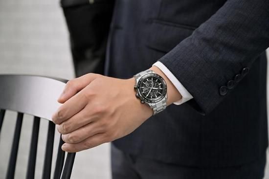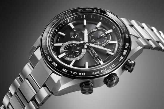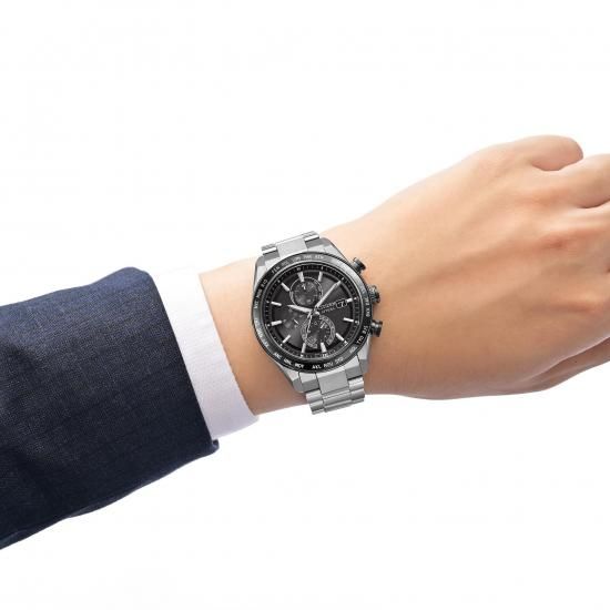 モノトーンでまとめたカラーリングで視認性を確保しました。ベゼルはGPS搭載モデルで人気のサファイアガラスリングを搭載した高級仕様で、サファイアベゼルの上にシルバー蒸着で仕上げた都市名表示が輝きます。