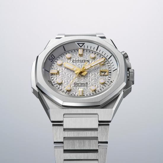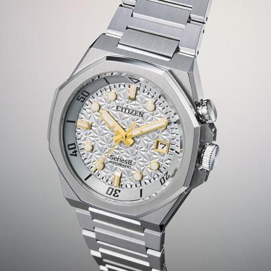 シリーズエイトの都会的でモダンな世界観、朝と夜の異なる表情を、モノクロームカラーと幾何学的な文字板のパターンで表現。シンプルでありながらも、20気圧防水を備え、上質でスポーティな存在感を放つ「890 Mechanical」シリーズの限定モデルです。